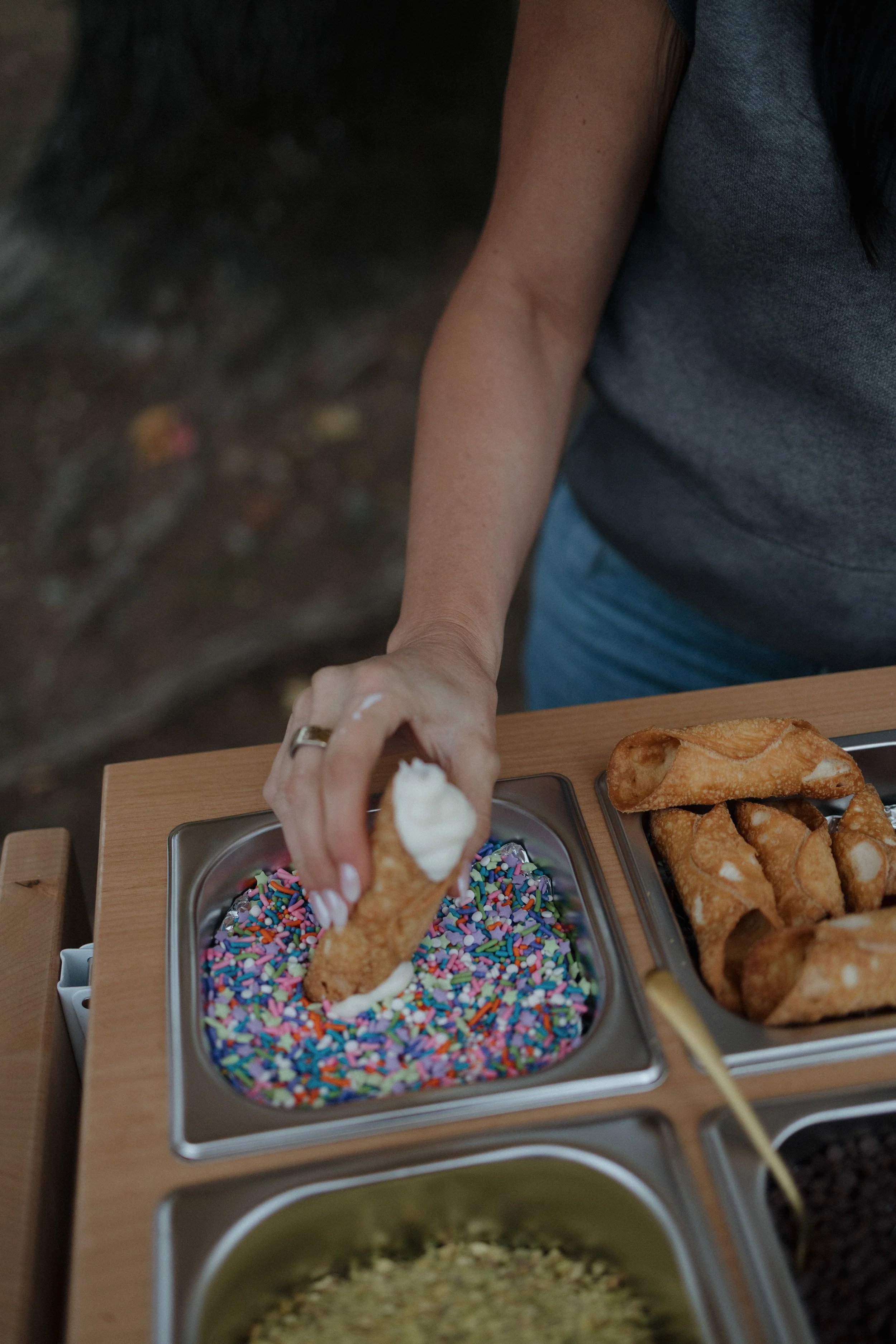 Indulgences By Dee blends artisan charcuterie with made-to-order desserts for a refined interactive event experience. From intimate gatherings to corporate events, guests can enjoy freshly filled cannoli, curated grazing selections, or beautifully styled mini sweets. Every detail is styled with intention- sophisticated, fun, and tailored to your celebration.